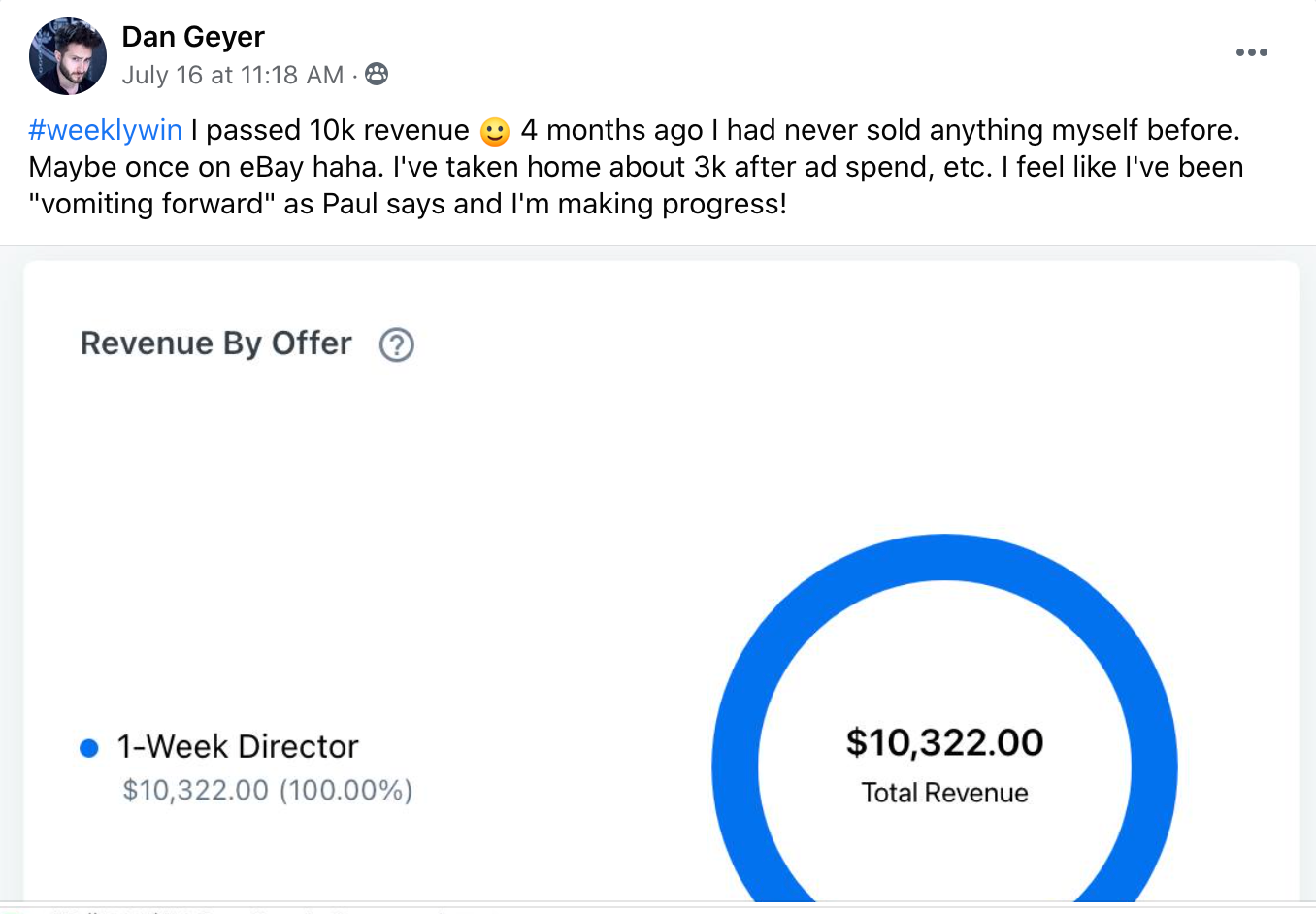 "With the Facebook ad strategies alone I was able to help a real estate investing coach scale to $100k per month in course sales!" - Blake I.