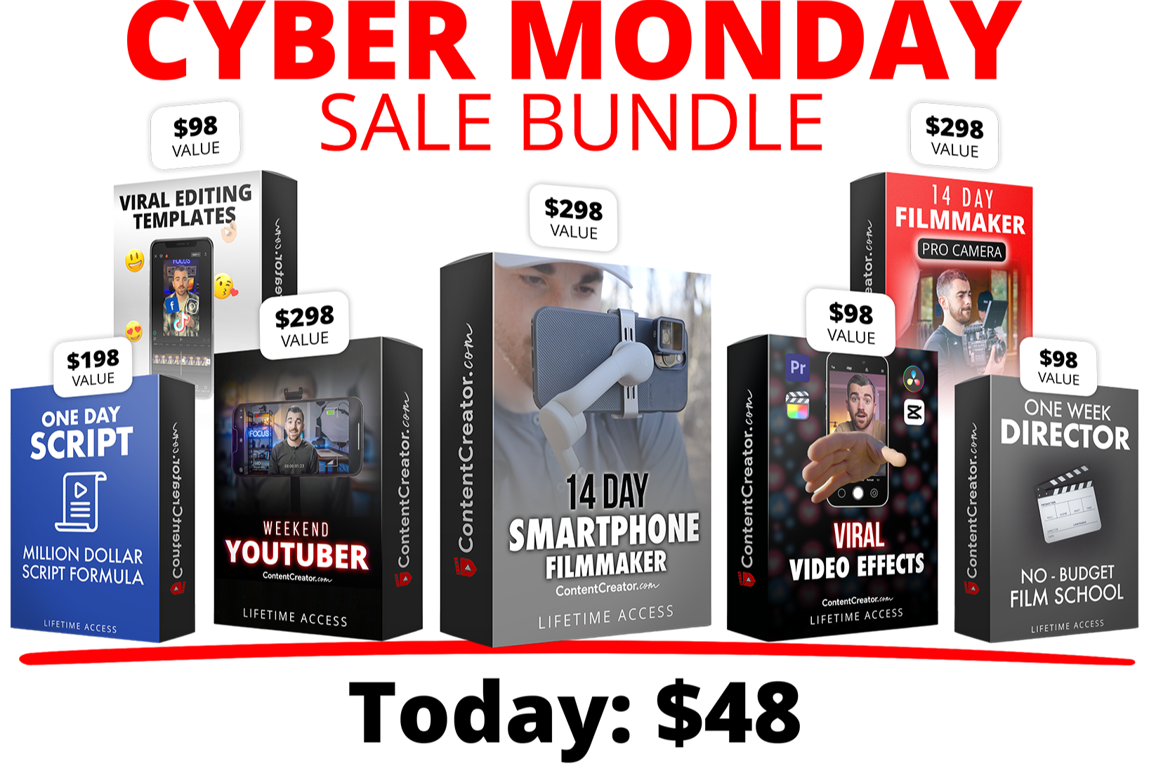 Cyber Monday Sale: Right now, You can get 14 Day Filmmaker, 4 additional courses, and bonus editing templates for a one time payment of $48 (that's 96% off đ±)
