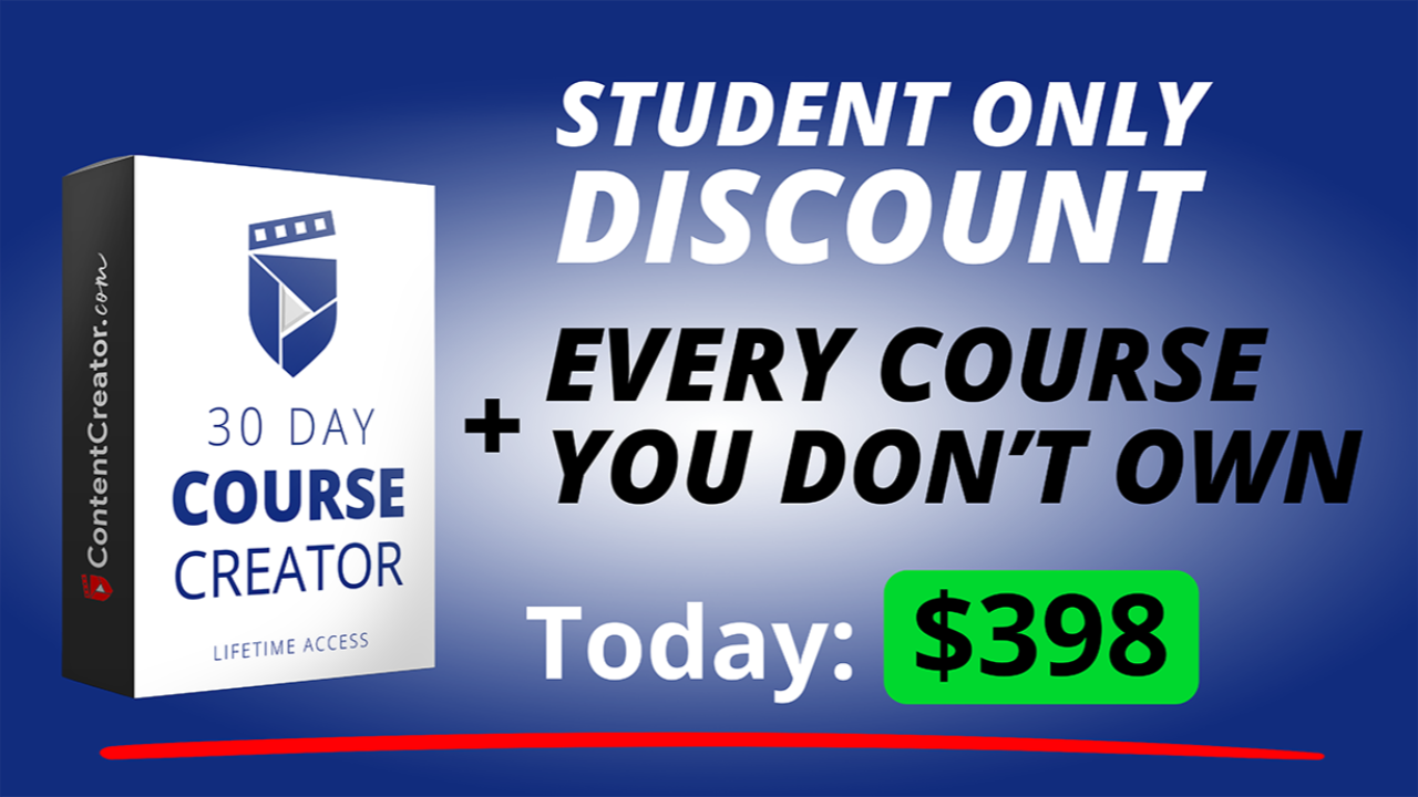 ✔ The Complete 30 Day Course Creator Program✔ The step-by-step 30 day checklist✔ Facebook & Google ads training✔ Million dollar funnel templates✔ Brand new "How to create products with AI" trainings✔ Digital product pricing calculator✔ Marketing script templates✔ The AI Creator Course✔ Learn the best AI tools✔ AI blueprints for reels, tiktoks, shorts, youtube videos, & ads✔ How to clone yourself✔ AI visual effects trainings✔ How to access AI tools without expensive subscriptions✔ The 30 Day Content Strategist Program✔ Step by step freelance business checklist✔ Learn the best packages to sell✔ Video pricing calculator✔ How to land clients checklist✔ Freelance marketing strategies✔ Automatic access to every course you don't currently own